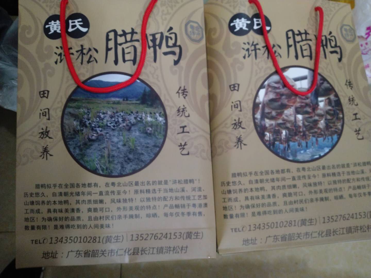 长江"浒松腊鸭",历史悠久,自清朝光绪年间一直流传至今,原料精选于当地山溪、河流、山塘饲养的本地鸭,其肉质细嫩,风味独特,其制作程序以独特的配方和工艺流程加工而成,具有味美清香,外形美观的特点,产品畅销于粤港和珠江三角州一带。 联系电话:13527624153,13726594533